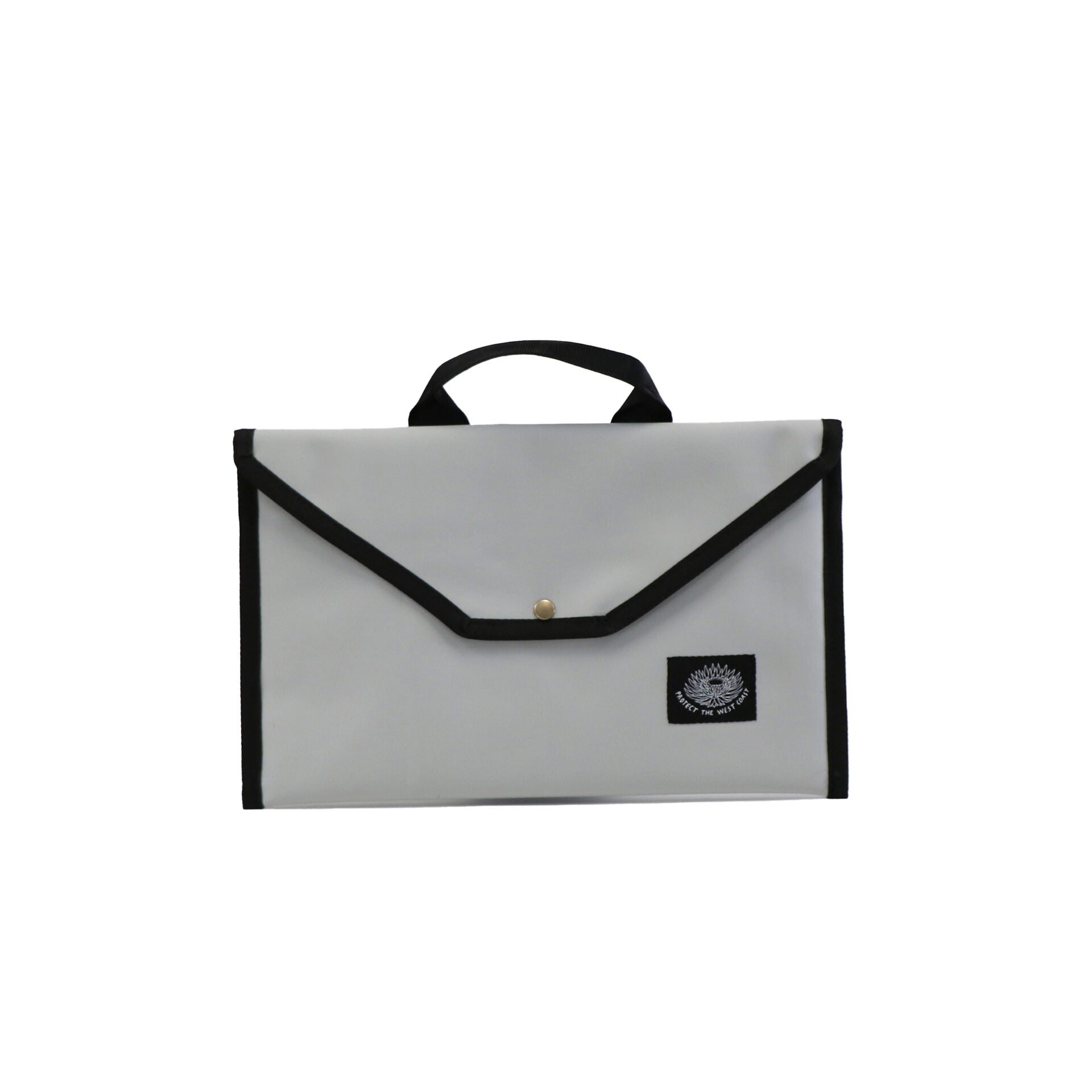 Protect your laptop in style with this sleek computer carrier bag. Crafted from upcycled canvas and lined with repurposed advertising banner material, it offers a snug fit, an outside pocket, padded protection, and a secure button closure. Whether you're heading to the office, a coffee shop or a weekend up the West Coast, this durable sleeve ensures your device stays safe while reducing waste, so you can carry your laptop with confidence and protect the environment at the same time.