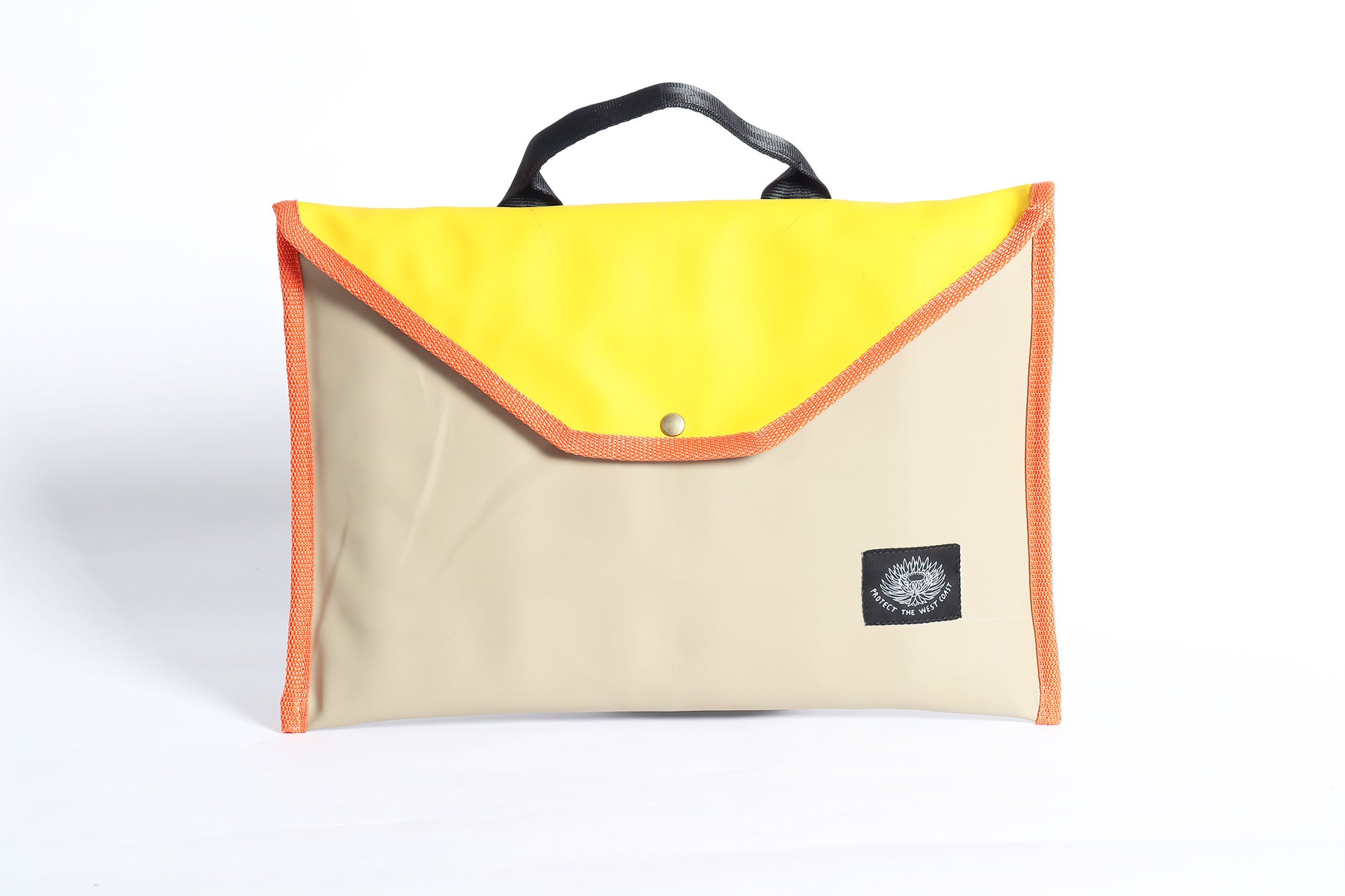 This padded sleeve blends sustainability and functionality. Made from repurposed fabrics, this carrier bag offers superior protection without compromising on style. It features a snug fit, an outside pocket, padded protection, a secure button closure and the soft inner lining. It will keep your computer safe, while its lightweight, slim design makes it easy to slip into any bag. Perfect for professionals, digital nomads or students on the go who care about quality and protecting the environment.