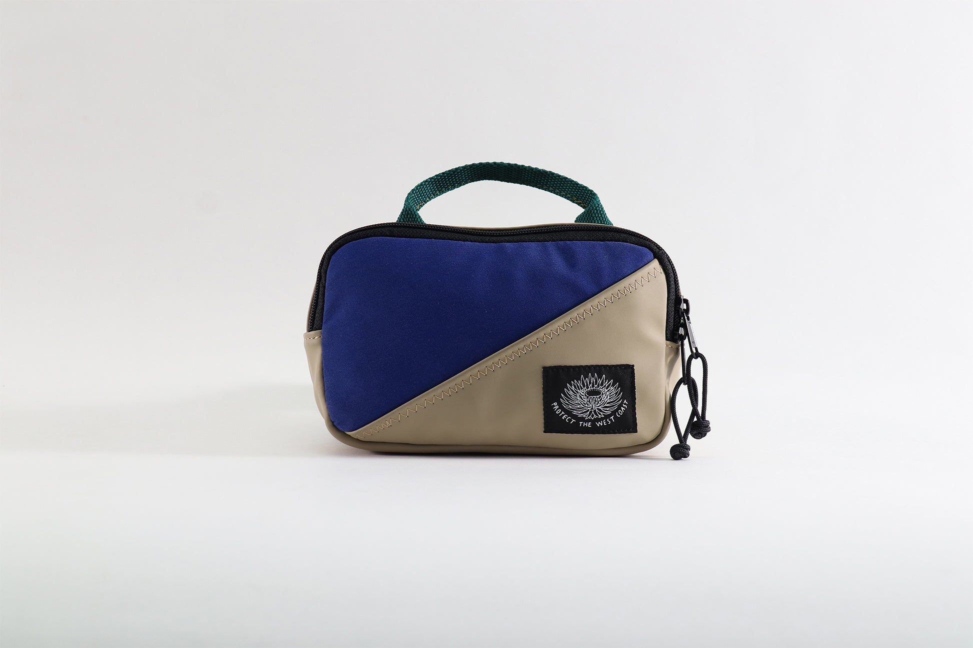 A smaller sized cross body with adjustable webbing strap function and top handle strap. Front zip opening, with an internal slip/phone pocket. The back panel includes a zip slip pocket. Inside lined with repurposed poly twill.