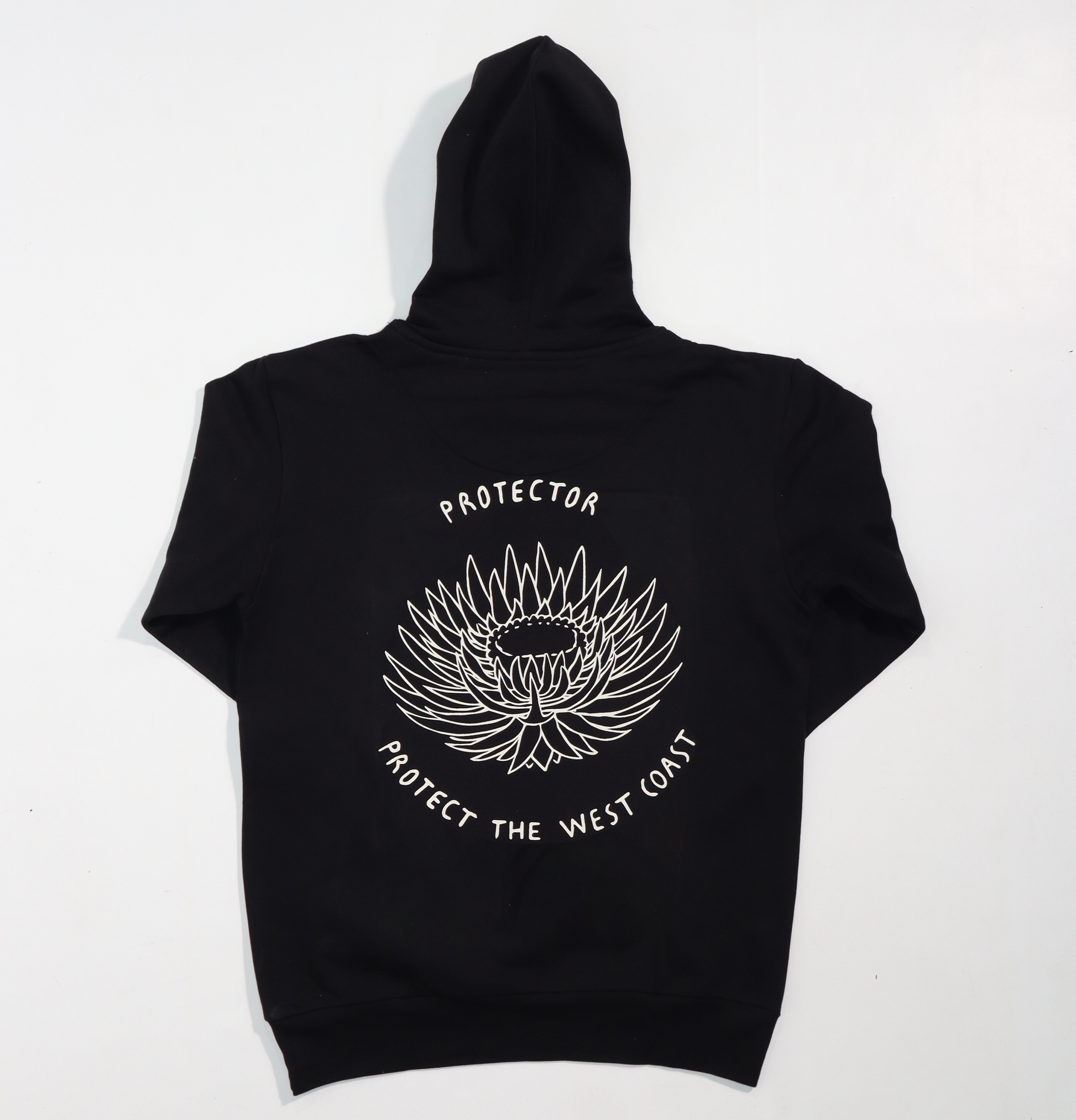 A flat shoelace-style drawcord adds a utilitarian detail to the generous hood, while the kangaroo patch pocket delivers everyday functionality. Finished with our bold “Protector” back print and front chest placement, a statement in both design and purpose.