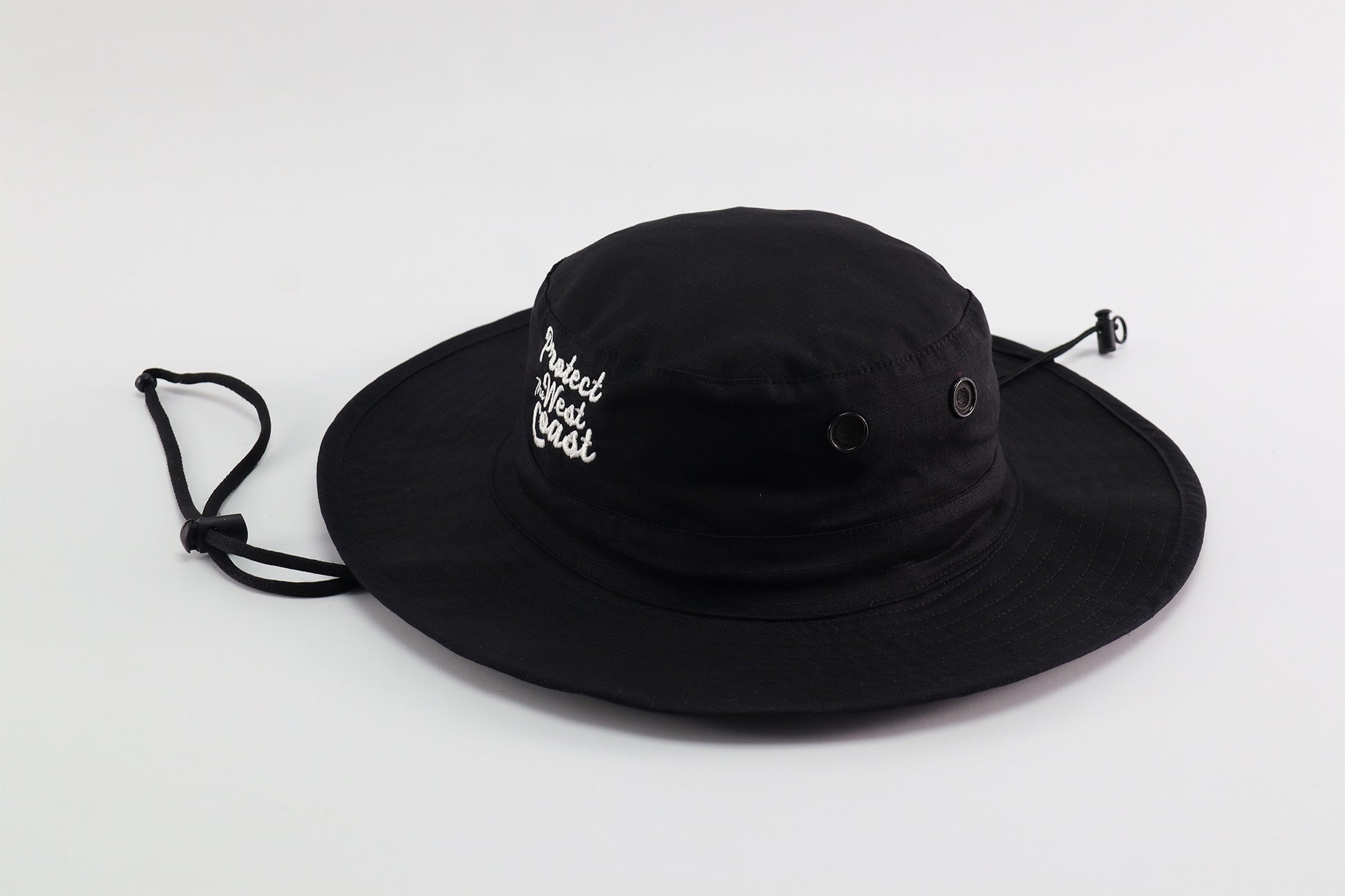 This Wide Brim hat is crafted from durable 100% cotton ripstop fabric, ensuring long-lasting wear and breathability. Designed to fit most sizes comfortably, it features metal eyelets for enhanced ventilation and an elastic chin cord to keep the hat securely in place during outdoor activities.